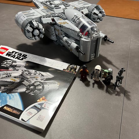 LEGO Star Wars rumskib med flere minifigurer. Sættet består af et større rumskib i lyse nuancer med blå og grå detaljer samt bevægelige sektioner på toppen. Medfølgende minifigurer forestiller forskellige karakterer fra Star Wars-universet. Egnet til leg og udstilling for fans af LEGO og Star Wars.