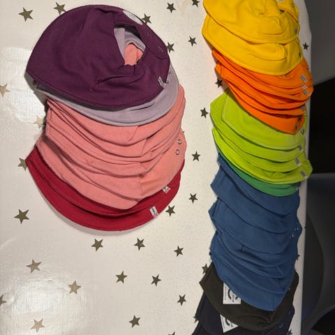 Hagesmæk til baby i blød bomuld. Modellen findes i mange forskellige farver, som kan vælges efter behov. Velegnet til daglig brug ved måltider eller som savlesmæk. Hagesmækken er unisex og kan bruges af både drenge og piger. Kan lukkes i nakken, med en trykknap