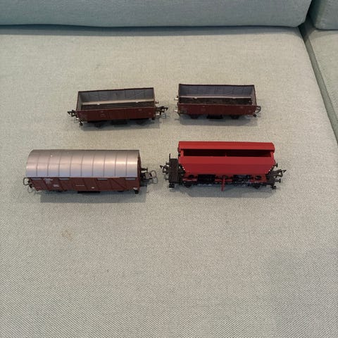 Godsvogne til modeltog med øl- og tankmotiver