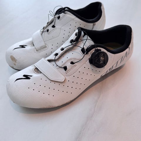 Specialized Torch 1.0 Road cykelsko - Hvid str 40. brugt men fungerer som de skal. Klamper til Look Keo pedaler følger med.