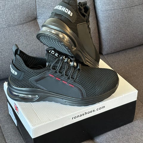 Ronashoes Luna Black sneakers i størrelse 45. Skoene er sorte med overdel i åndbart mesh-materiale og snørelukning. Modellen har polstret hælkappe og synlig luftpude i sålen. Ydersålen er mønstret for bedre greb. Velegnet som hverdagssko eller fritidssko.