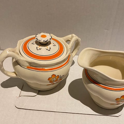 Fajance, Sukker og fløde sæt, Grindley England, Smukt retro sukker/flødesæt i flødefarve fra Grindley England. I meget fin stand. Har et meget lille hak under sukkerskålen. Ses ikke.
