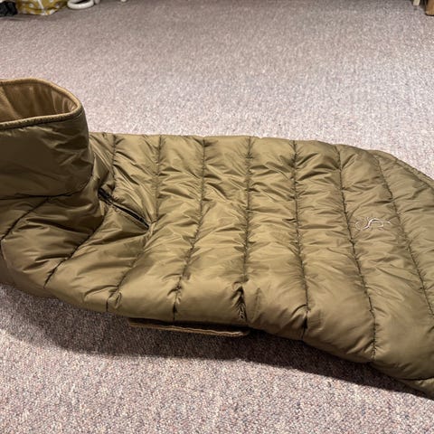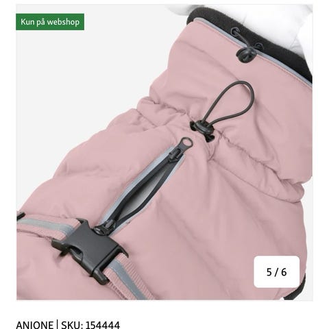Hundejakke i quiltet design i beige farve. Jakken dækker hundens ryg og bryst og lukkes omkring kroppen. Egnet til brug på gåture i køligere vejr for at give ekstra varme og beskyttelse. Er syet ind så den passer til en coton de tulear, på 8 kg