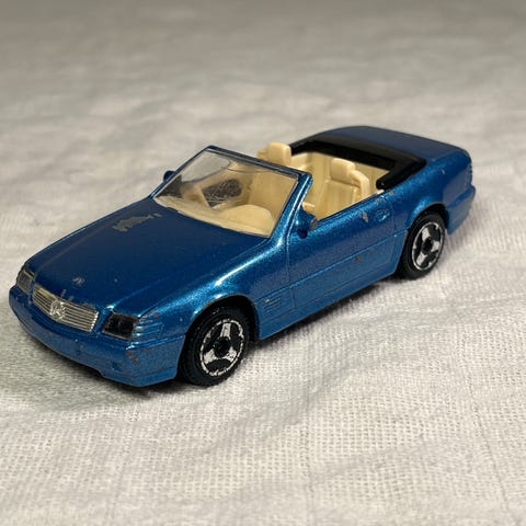 En Ford Mustang som er i blå metallak, Mustang er i en skala 1:43 og kommer fra bburago.