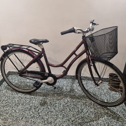 Hånd + fodbremser, ringeklokke kurv og lås med 1 nøgle.