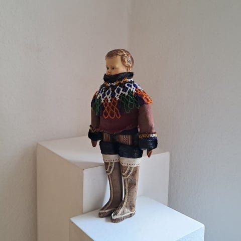 Grønlandica, 2 stk inuit dukker fra Grønland med håndlavede nationaldragter på. Dukkerne er i porcelæn og i meget flot stand og med bevægelige hoveder, arme og Ben. De er nok ikke antik, men har en del år på bagen. Grønlandske dukker er klassiske samleobjekter. 700kr stk og begge for 1200kr. Sender gerne.