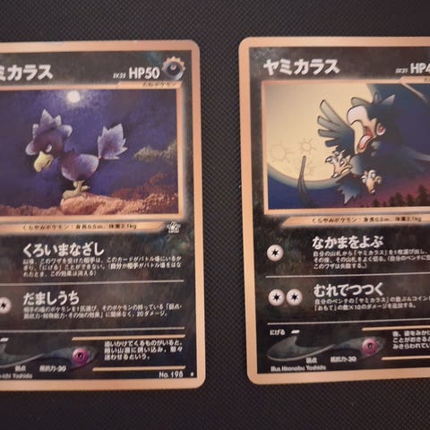 Sælger disse 3 originale japanske Murkrow Pokémon-kort fra det klassiske Neo Genesis sæt (No. 198).