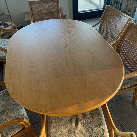 Brugt bord fra udestue, tror ikke bord og ben passer sammen, men ser fint ud.