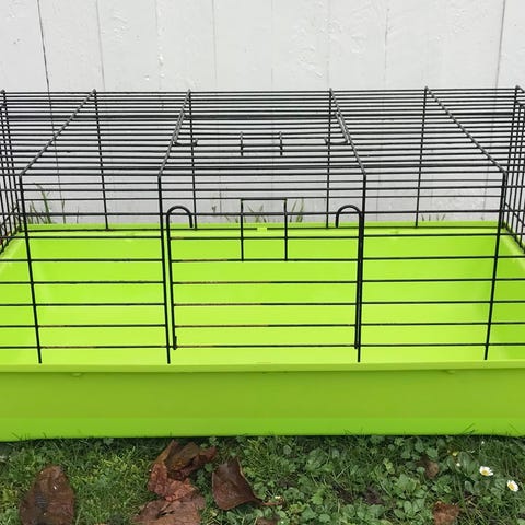 Indendørs kanin/marsvinebur i målene L. 160 b. 60. H. 50. Der følger to drikkedunke, to høhække, mad og drikkeskål med som vist på billedet. Der følger låg til buret, jeg har bare taget det af. To huse og bro medfølger hvis det har interesse.