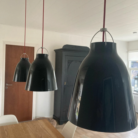 Caravaggio-loftslamper, Ø257 mm, hvid med grå stofledning. Pærer medfølger ikke. Fra ikke-ryger hjem.