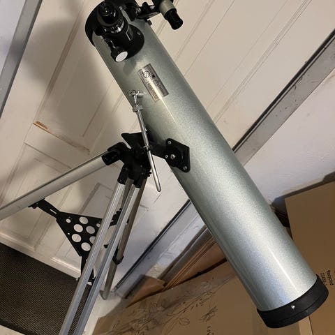 Fint begynderteleskop. Fejler intet. Vejer ikke så meget.