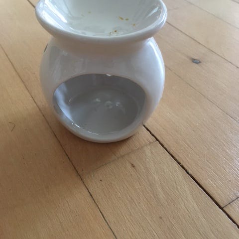 Sandfarvet elefant aroma-/duftlampe i ru keramik med turkisblå glasur i skålen til olien.
