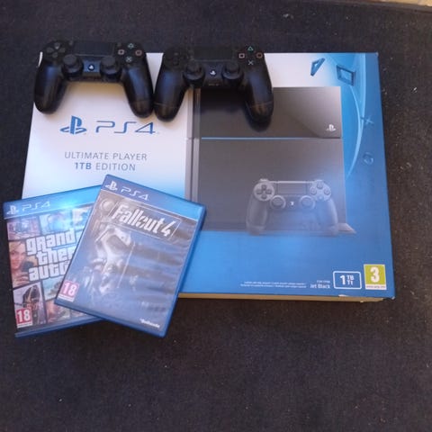 Fejler intet alle kabler følger med plus 2 kontroller og ladestik plus 5 ps4 spil som intet fejler