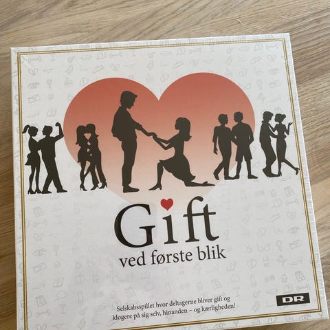 DR Gift ved første blik brætspil. Spillet er baseret på tv-programmet og handler om parforhold, ægteskab og relationer. Spillerne besvarer spørgsmål og løser opgaver med udgangspunkt i hverdags- og parforholdssituationer. Egnet til flere spillere og kan bruges som selskabsspil til f.eks. par, venner eller familie.