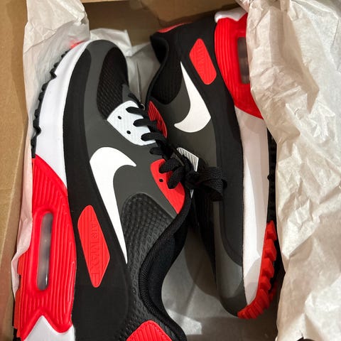 Nike Air Max 90 PRM sneakers i str. 43. Modellen er en Air Max 90 Premium med synlig Air-enhed i hælen. Skoen har brun og sort overdel i kombination af tekstil og syntetiske materialer samt gummisål med mønster for greb. Velegnet som hverdagssneaker.