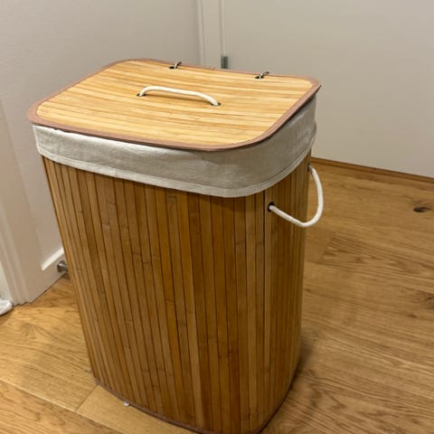 Aquanova vasketøjskurve med håndtag af kunstlæder 2 stk, Bredde: 42cm, Højde: 55cm, Fin stand, Ny pris: 918 kr