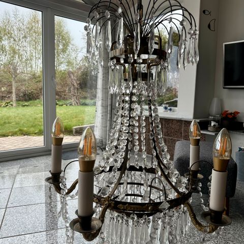Flot og “ubrugt” lysekrone som er spraymalet i en flot lilla. Den er uden brugsspor da den aldrig nåede at blive hængt op. Sælges kun grundet flytning til mindre bolig.
