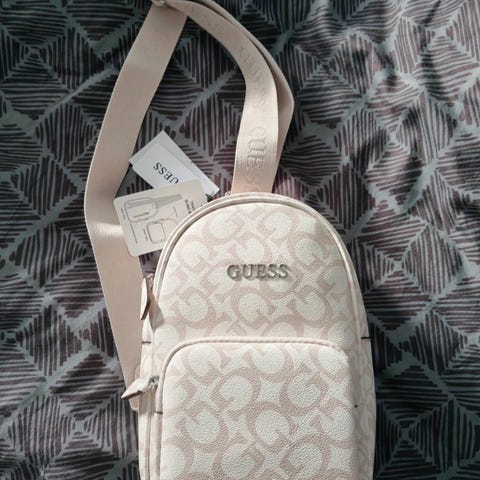 Guess rygsæk til kvinde i kunstlæder. Tasken er i brun nuance med allover-logo mønster og lyse kanter og stropper. Den har justerbare skulderstropper og lille bærehank øverst. Rygsækken har hovedrum med lynlås, indvendig lynlåslomme samt mindre åbne lommer til småting. Udvendigt er der en ekstra lynlåslomme på fronten. Velegnet som mindre hverdags- eller bytetaske.