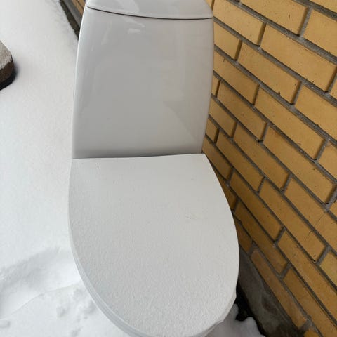 Toilet i hvid porcelæn med integreret cisterne og toiletsæde. Ingen synlige ridser mv. og helt hvid inden i. Blot støv op fra renovering af hus.