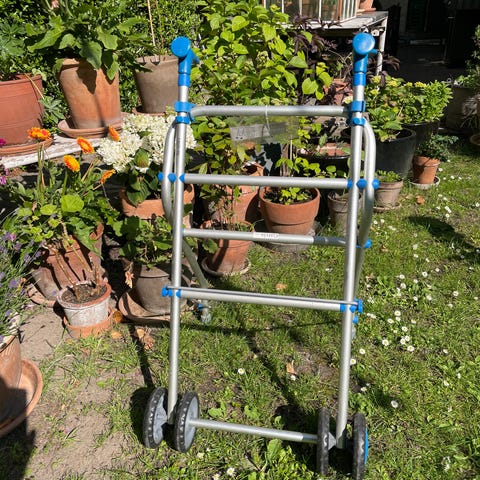 Drive Medical aluminium foldbar gangstativ i sølv til voksne. Gangstativet er fremstillet i let aluminium med gummifødder for stabilitet på gulvet. Det kan foldes sammen for lettere opbevaring og transport. Egnet som ganghjælpemiddel til voksne, der har behov for ekstra støtte ved gang og forflytning indendørs eller på jævne underlag.
