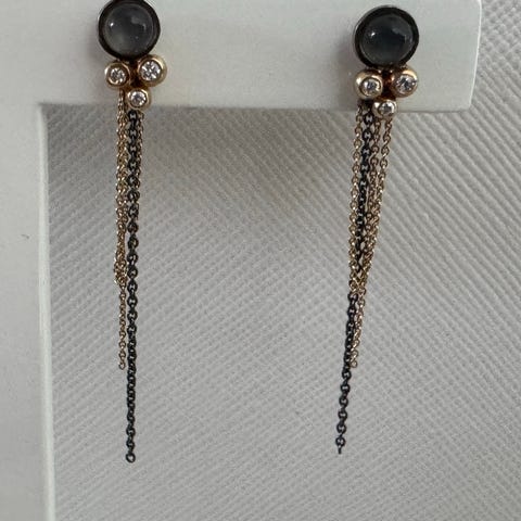 Øreringe, guld, Ole Lynggaard, Fine øreringe med røgkvarts og to diamanter
