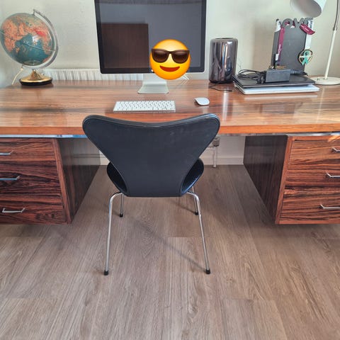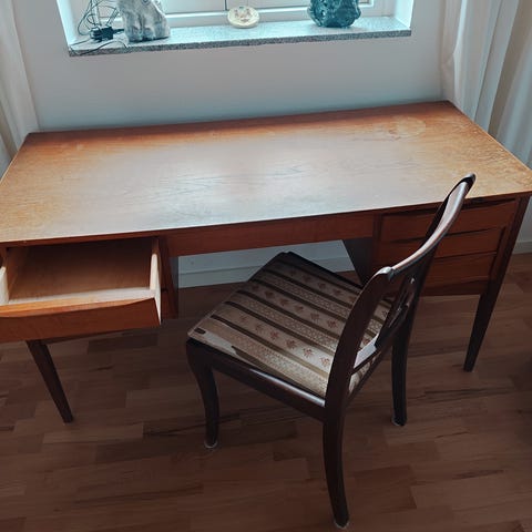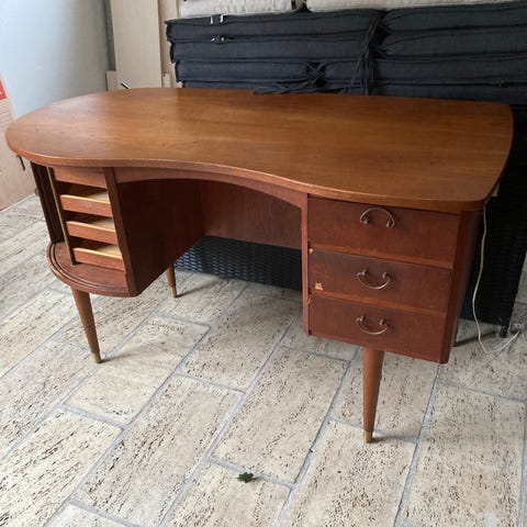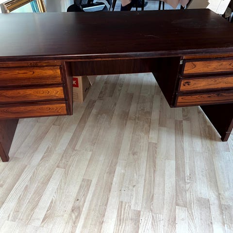 Fint stort lyst palisander skrive bord med 2 skuffer +2 snyde skuffer
