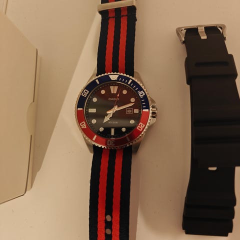 Exclusiv Casio duro marlin dykkerur med en flot grøn urkrans Hulk urkransen er roterbar i en retning. Uret har en orginal stållænke og er vandafvisende ned til 200M. Uret har datovisning. Uret er med den eftertragtede sværdfisk afbillede på urskiven virker upåklageligt