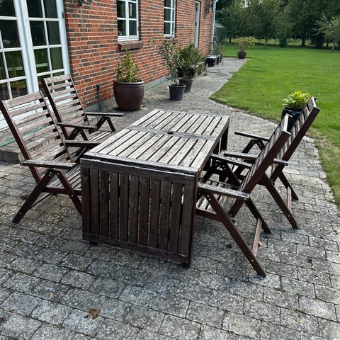 2 stk havestole + bord fra Ilva, kun 1 år gammelt. Gyngesofa med hynder til. Have parasol og fod. 3 brugte børne højstole. Stor rumdeler fra Ikea. Alt kan hentes i Ølstykke tæt ved Egedal ST.
