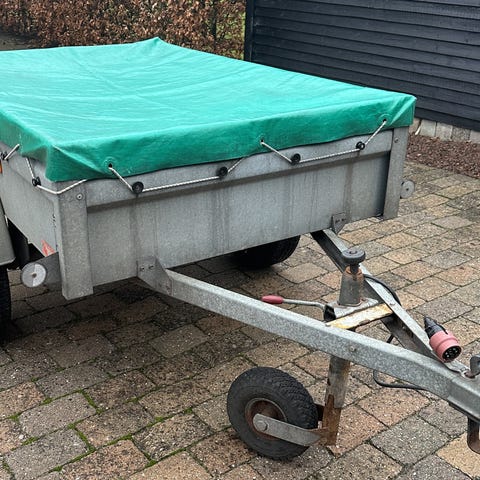 Va 500 trailer i galvaniseret stål. Mindre en-akslet påhængsvogn egnet til transport af haveaffald, mindre byggematerialer og lignende gods. Traileren har bagklap, lygter og reflekser samt standard kuglekobling til montering på personbil.