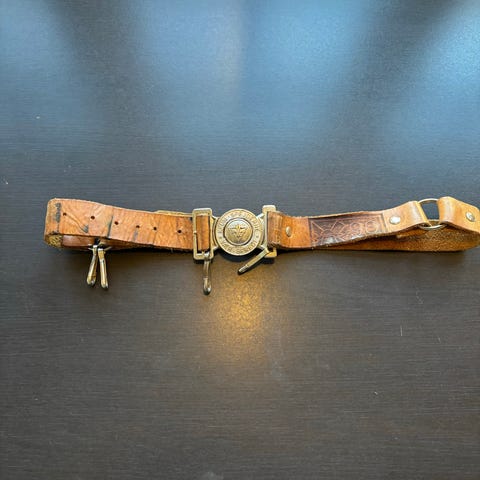 Spejderbælte DDS "Det danske spejderkorps". 107 cm læderbælte + 10 cm spænde, se fotos.