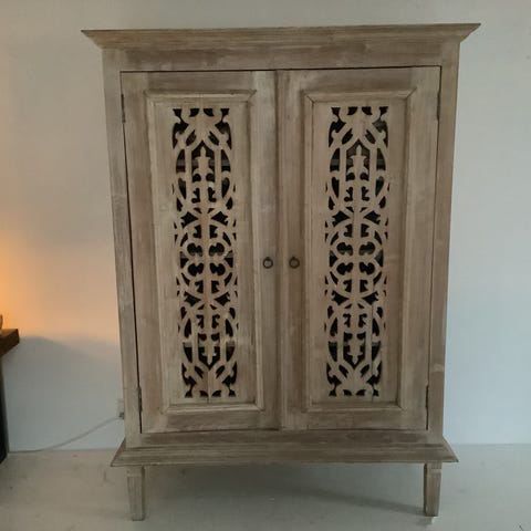 Håndlavet Linnedskab/ klædeskab i Teak fra Bali, hvidpigmenteret. Nypris 5000kr