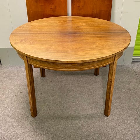 Lækker rundt spisebord i taek med udtræk, to tillægsplader. H. 72 cm. Tillægsplader 50 cm. Spisebord med plader totallængde 210 cm. Fremstår i super stand. Evt kan lev aftales