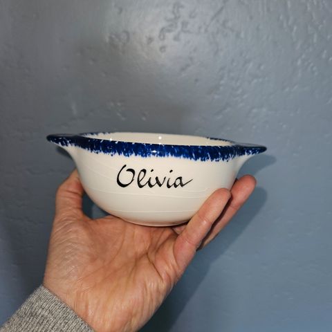 Fin hvid serveringsskål med blå høns fra Anna Olivia