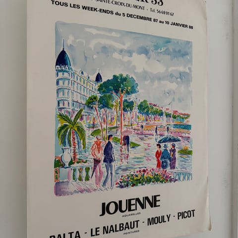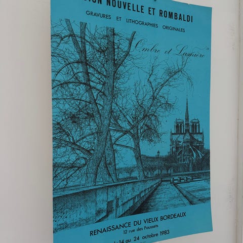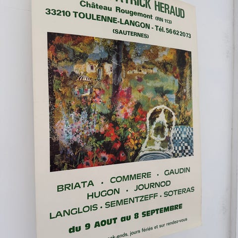 Yvonne Cathalan kunstplakat fra udstilling på Galerie L’Ami des Lettres i Bordeaux. Plakaten viser et maleri med en gruppe okser og personer i et dramatisk landskab. Øverst er galleriets navn og adresse trykt, og nederst kunstnerens navn samt udstillingsdato i marts 1981. Velegnet til indramning og ophængning som vægdekoration.
