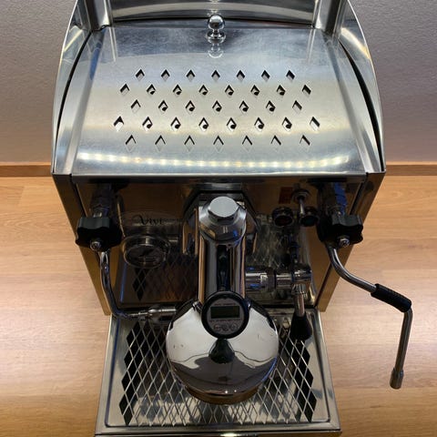 Izzo Alex PID varmevekslermaskine, kun brugt 2 1/2 år (endda med med filter i vandtanken). Den fremstår nærmest som ny og har netop fået nye pakninger i ekspansionsventilen, silikone gruppepakning, IMS brusesi og præcisionsforarbejdet filterkurv samt ny vakuum breaker. Maskinen har indbygget shot-timer, så man kan holde øje med skuddets længde. PID'en giver en stram temperaturstyring af den isolerede varmevekslerkedel. Der medfølger desuden vandfiltre til vandtanken af typen Nical så man er sikret en lang periode med kalkfattigt vand. En anden spændende maskine (evt. defekt) kan indgå i handlen. En Fiorenzato F4 Nano doserless kværn kan tilkøbes.