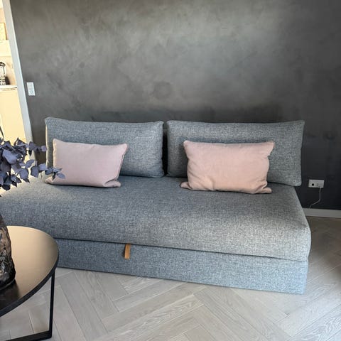 God sovesofa, med opbevaring i bunden. Billede er lånt på nettet - men andet billede viser farven. Farven er sort meleret.