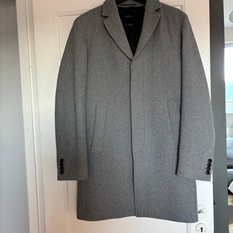 Ubrugt grå CF uld frakke, fra røgfrit miljø. Prima kvalitet med læg i ryg.
