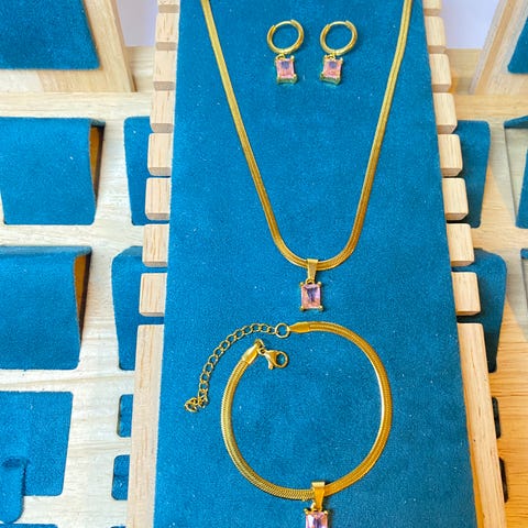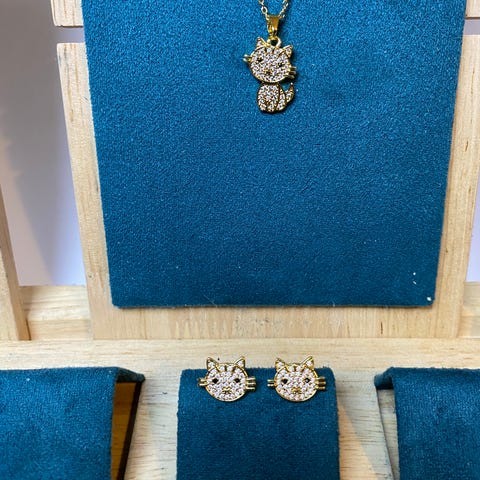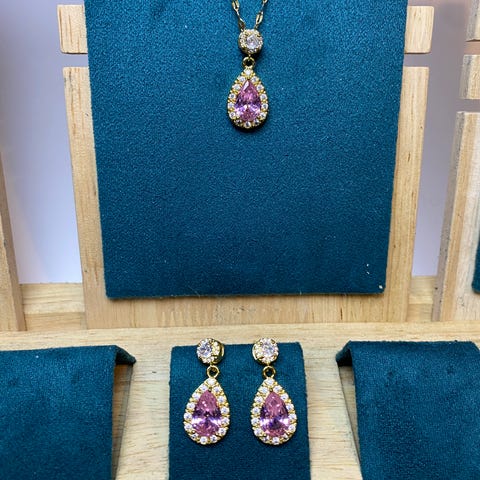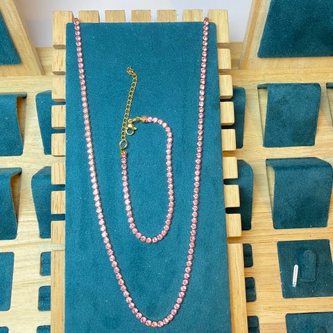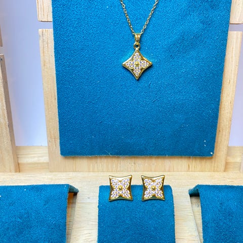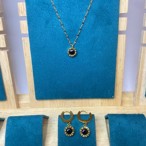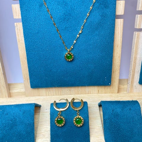 💎 Halskæde og øreringe sæt med romertal 1-12 og zirkonia sten i midten.