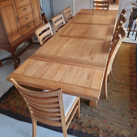 Massivt egetræsspisebord med stole sælges helst samlet : 3000