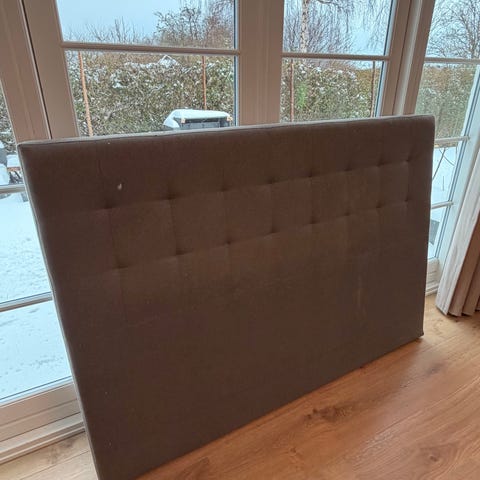 Ellos sengegavl i grå farve. Polstret gavl med knapdetaljer, der passer til en standard seng. Velegnet til soveværelse som ryglæn ved læsning eller afslapning i sengen.