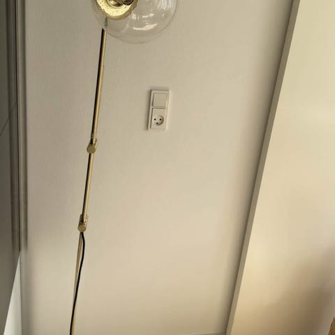 Pæn og velholdt gulvlampe i guld. Brugt, men i rigtig god stand og fungerer som den skal. Passer fint ind i de fleste hjem.