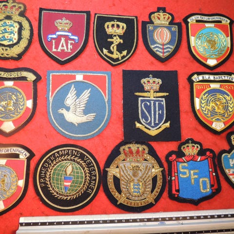 SORTIMENT AF GAMLE DANSKE GULDBRODEREDE MOTORCYKEL KLUB MÆRKER