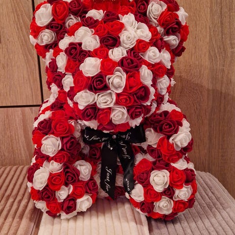 Kunstige bamse lavet af kunstige blomster