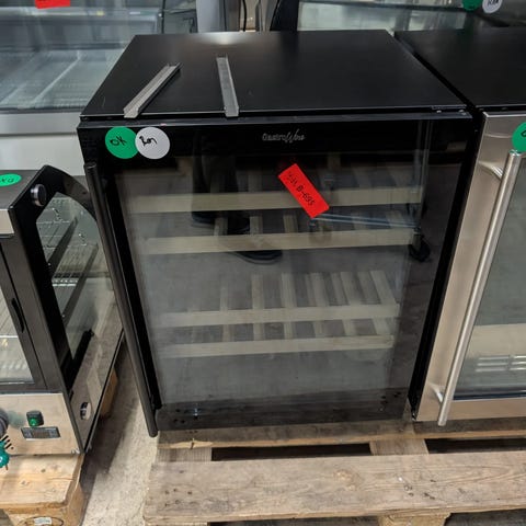 Vinkøleskab, der har flere udtræksbare træhylder til opbevaring af vinflasker vandret. Indvendigt er der elektronisk display og betjening i toppen til regulering af temperatur. Velegnet til montering under bordplade i køkken eller bryggers til tempereret opbevaring af vin.