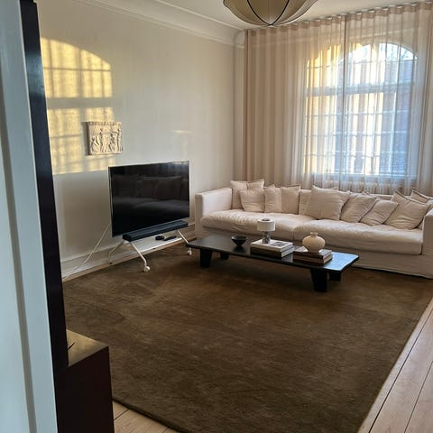 Vi kan desværre ikke helt forene os med farven i vores hjem, selvom det er et uroligt smukt og lækkert tæppe.