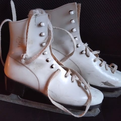 Figure Skate kunstskøjter i hvid, størrelse 34. Klassiske hvide skøjter med snørelukning og støtte omkring anklen. Egnet til børn med skostørrelse 34 til brug på isbaner og skøjtehaller.