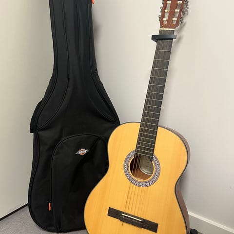 Celebrity by Ovation akustisk guitar med indbygget pickup og volumen- og tonekontrol på kroppen. Guitarens top er i træ med dekorativ rosette omkring lydhullet. Bagsiden er i sort kompositmateriale med udgang til jack-kabel til forstærker eller lydanlæg. Velegnet til både akustisk spil og til brug med forstærkning ved øvning og optræden.