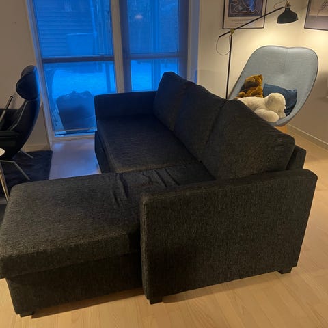 Flot og velholdt hjørnesofa med sovefunktion og opbevaring
