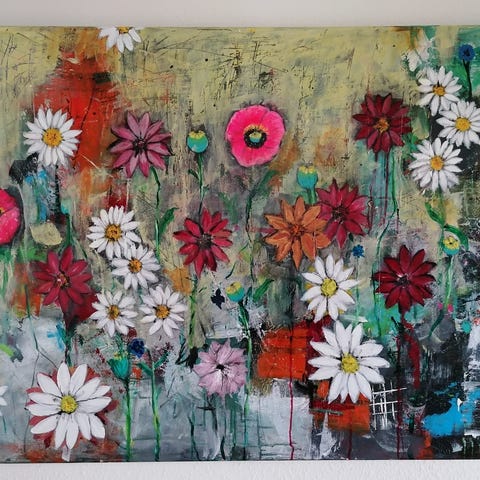 Maleriet "Frit flor" er akryl malet på lærrede af sælger.