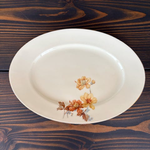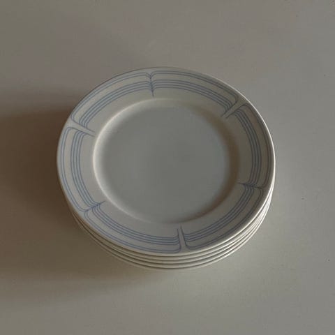 De er udført i den klassiske "Royal Ivory" stil med en varm, cremet bundfarve, der giver et blødere udtryk end kridhvidt porcelæn.